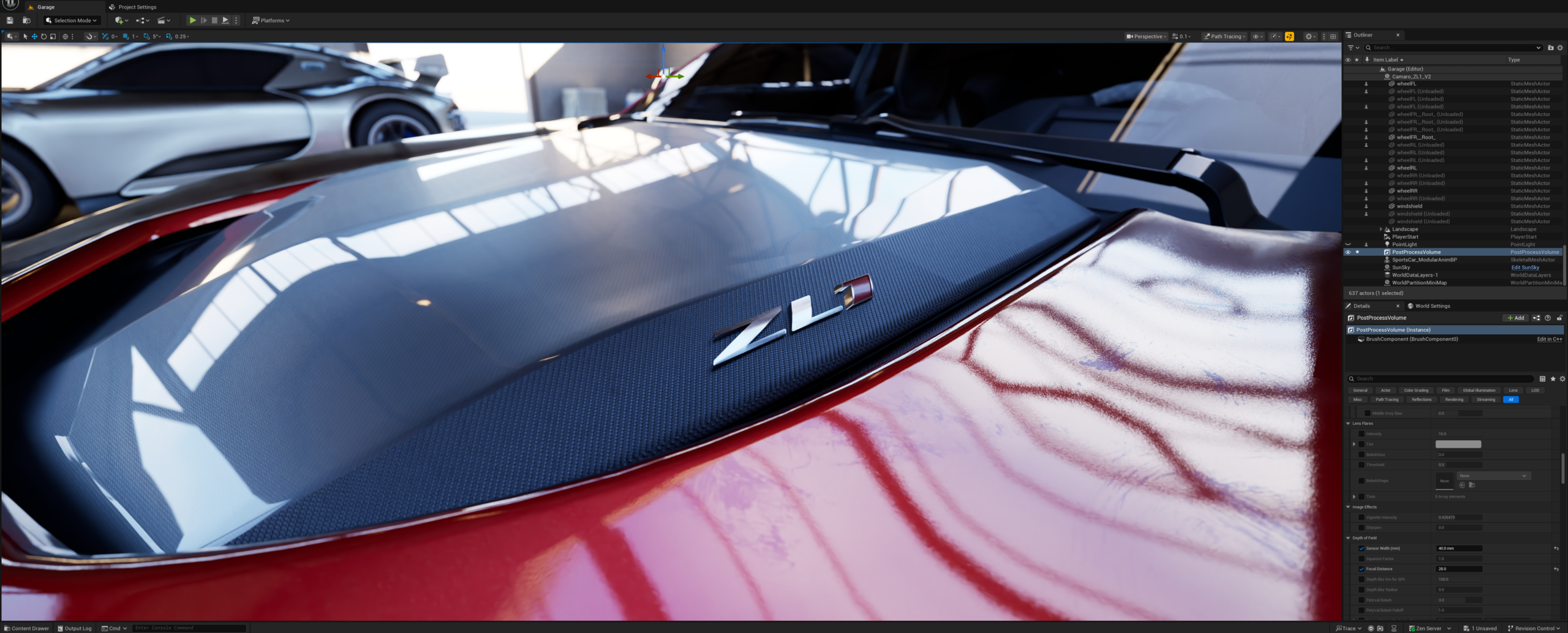 | Nanite | Vehicle and environment models with complex geometry without manual LODs |